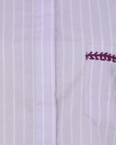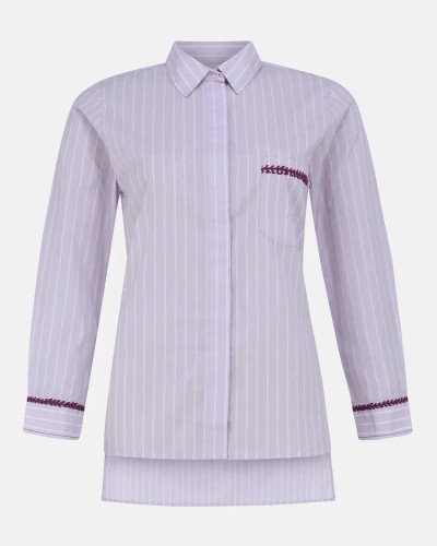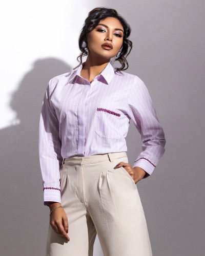 Lavender Striped and Embroidered Cotton Taaga Work Wear Top