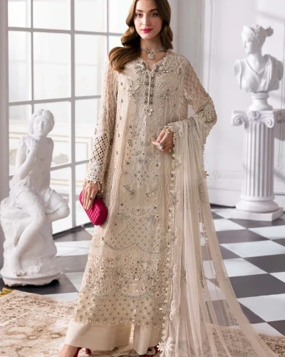 Unstitched Embroidered Chiffon Suit 3 Pc